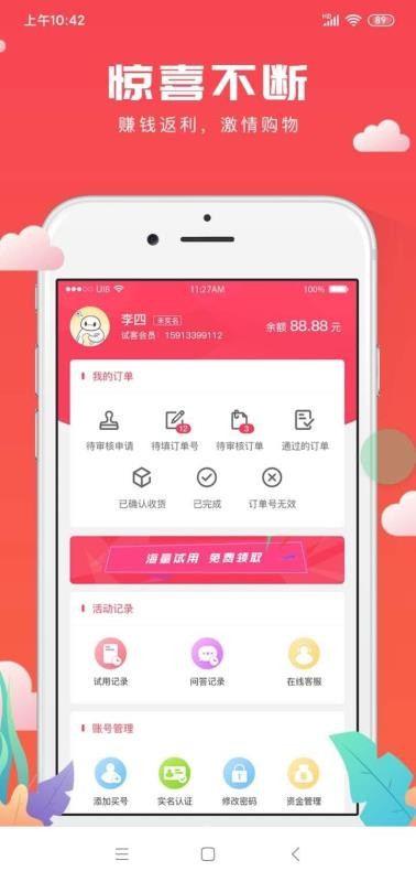 1、平台里有免费试用窗口,用户可以免费试用各种商品,更好的体验;