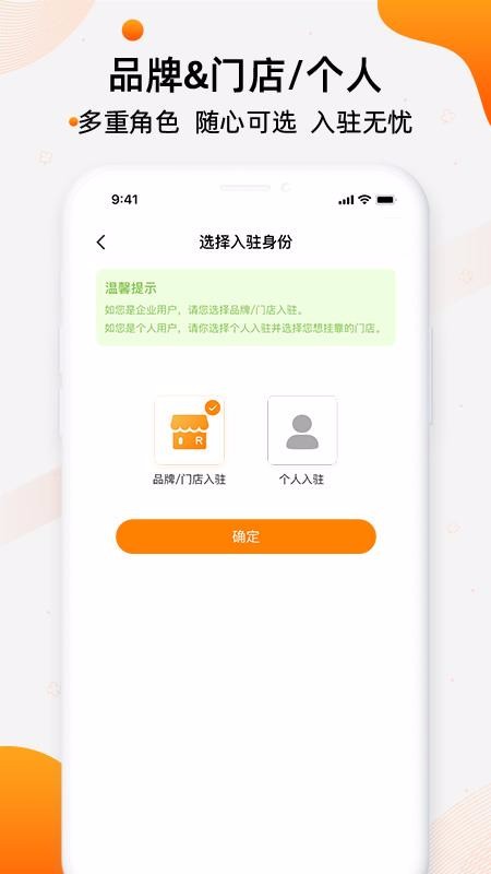 3、选择身份并快速入驻,让门店的信息更真实,便于准确的选择
