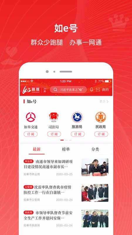 如e融媒是一个手机新闻客户端,汇集了各种便捷的功能,比如新闻资讯、视频直播、电视点播、广播直播、政务发布、便民服务等;拥有各种媒体号,自行订阅媒体号便于接收相关的资讯,同时还可以发现关于政府部门的媒体号,比如交通、司法局、旅游局、民政局等;在线即可浏览各种短视频,从各方面为你展示了如皋的美,可以根据分类进行查看;本地的用户还可以在该平台中领取专属的健康码,便捷的进出各大场所,同时还提供了关于疫情的数据,详细为你展示了疫情动态,当地的民众查看完数据信息后还可以在线进行讨论交流。