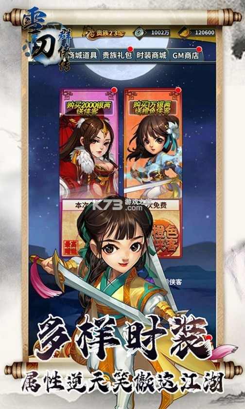 一元首充不但可以得稀有红装角色,还有无限商城特权,里面的装备通通以折扣价卖出。全新的侠客传奇,残酷的武林世界,快来体验不一样的恩怨情仇吧,游戏选取武侠的故事,充满经典的味道,尤其是画面非常的偏中国风,弘扬了中华优秀传统文化,而且画质又是非常的清晰,总体给人的美术表现力很强,尤其是江南的画面,真的是非常美,很吸引我,能够将最佳的特效完美的呈现,雪刀群侠传GM版官方下载仿佛有一股魔力一样,让你开始玩就停不下来。全新传奇侠客,瑞兽降临雪刀群侠世界,演绎不一样的江湖恩怨,创新性将竞技与回合融合在一起。游戏中加入豪侠榜、天香阁、攻城略地等强势竞技系统,无限商城同步登场,养成道具可无限购买;还有丰富的开服活动开启,强力装备,金色侠客,海量元宝道具限时获取,与全球千万玩家一起战斗!