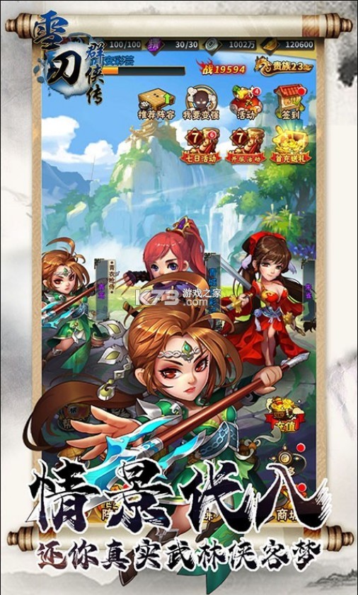 3、登录7天送好礼,充值卡收入囊中,免费领道具,暗金武将带回家!只要你敢玩,我们就敢送,江湖的主角就是你!