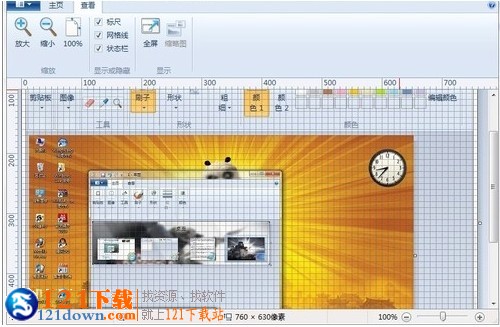在查看图片时,特别是一些需要了解图片部分区域的大致尺寸时,可以利用标尺和网格线功能,方便用户更好的利用画图功能。操作时,可以在查看菜单中,勾选“标尺”和“网格线”即可。