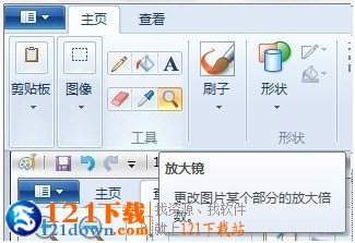 操作方法:在画图“主页”选项卡中“工具”栏中,单击“放大镜”,将放大镜移至需要放大的区域,单击方块中显示的图像部分将其放大。