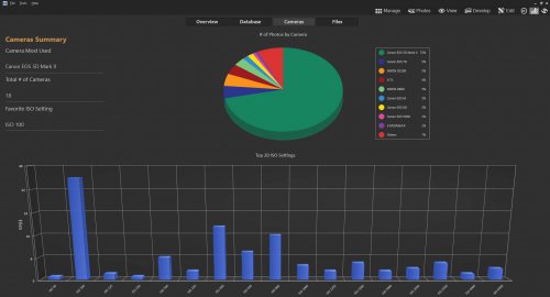 仪表板模式图表展示您每月每年的照片计数,您最常用的相机以及最喜欢的ISO设置等等。