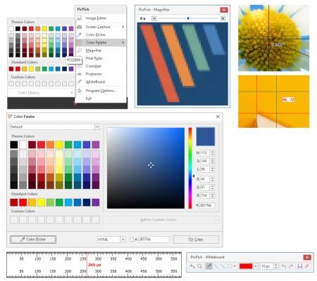 PicPick具备了截取全屏、活动窗口、指定区域、固定区域、手绘区域功能,支持滚动截屏,屏幕取色,支持双显示器,具备白板、屏幕标尺、直角座标或极座标显示与测量,具备强大的图像编辑和标注功能。