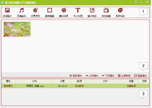 宝川电子相册是一款操作简单方便的电子相册制作软件,界面简洁,没有复杂花哨的其他功能,软件使用相当简单,适合非专业的普通用户使用。宝川电子相册也可以用作图片音乐生成视频的工具,即视频制作软件。